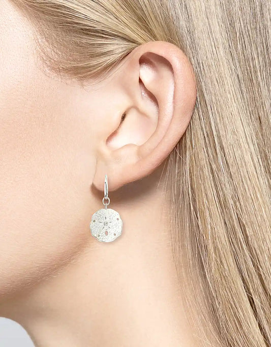 Sterling Silver White Enamel Sand Dollar Lever Back Earrings