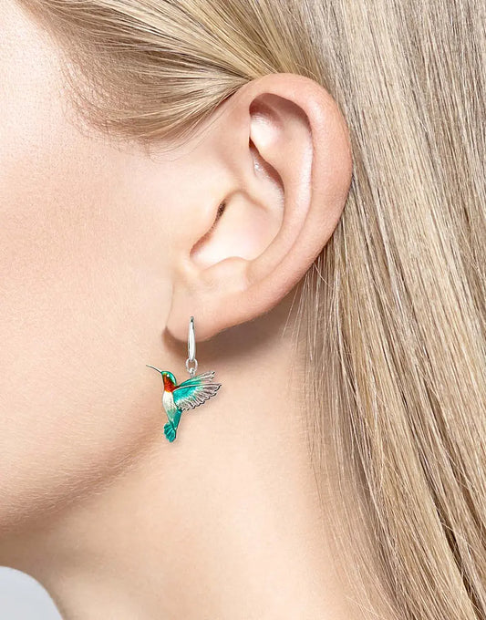 Sterling Silver Turquoise Hummingbird Lever Back Earrings